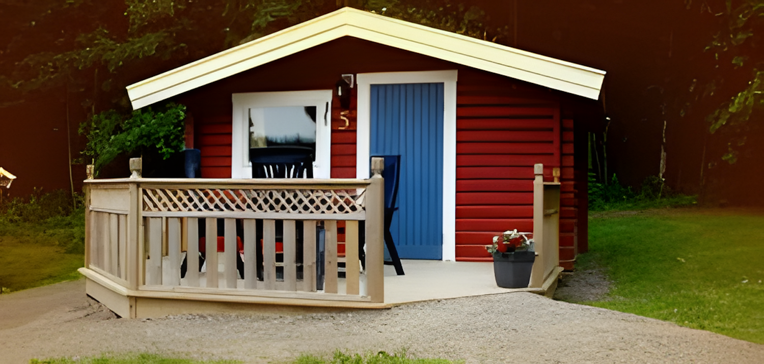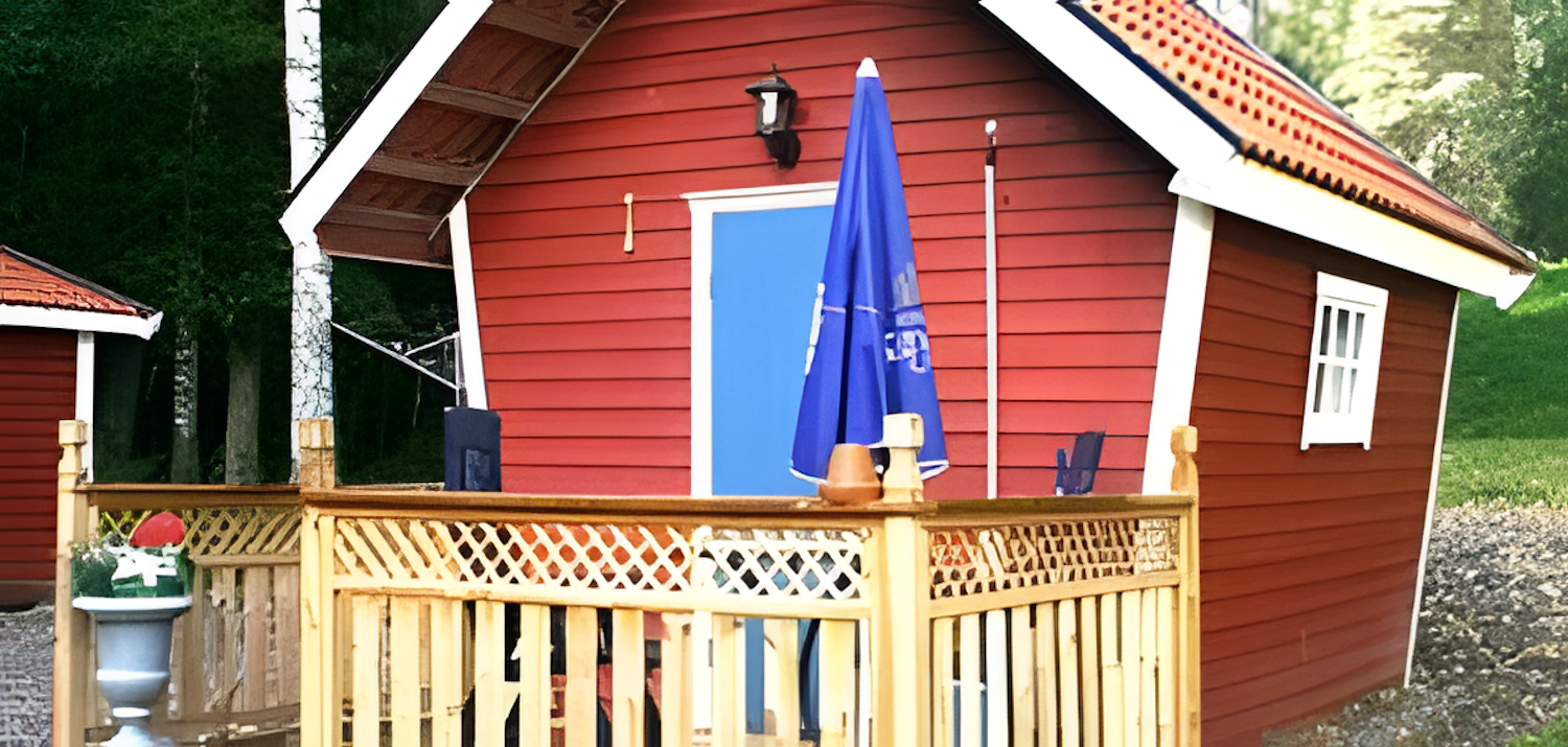 | Stuga 10 2-bädd 15 kvm, TV, kyl + kokplatta, mikro Honeymoonstuga med egen veranda, med stort parasoll, bänk & utemöbler, grill, handikappvänlig, dubbelsäng. | 900:- | 1100:- | 1400:- | 1700:- |