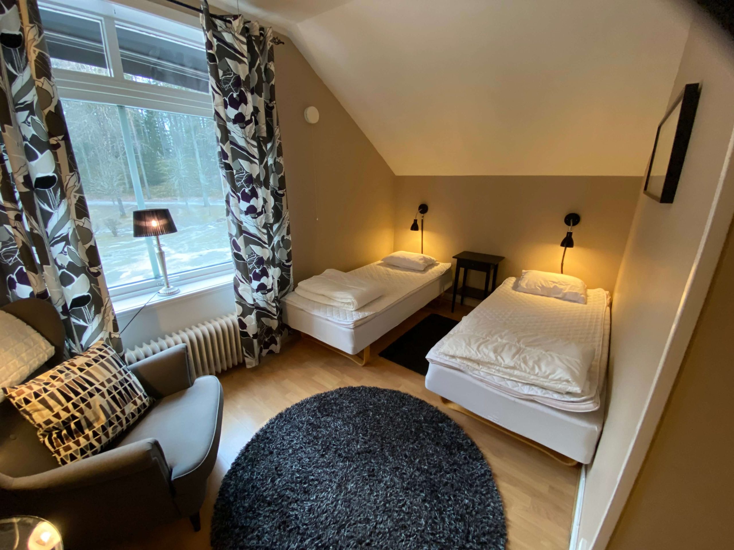 | Rum 5 (2-Bädd) 12 kvm, TV, enkelsängar | 700:- | 850:- | 1100:- | 1350:- |