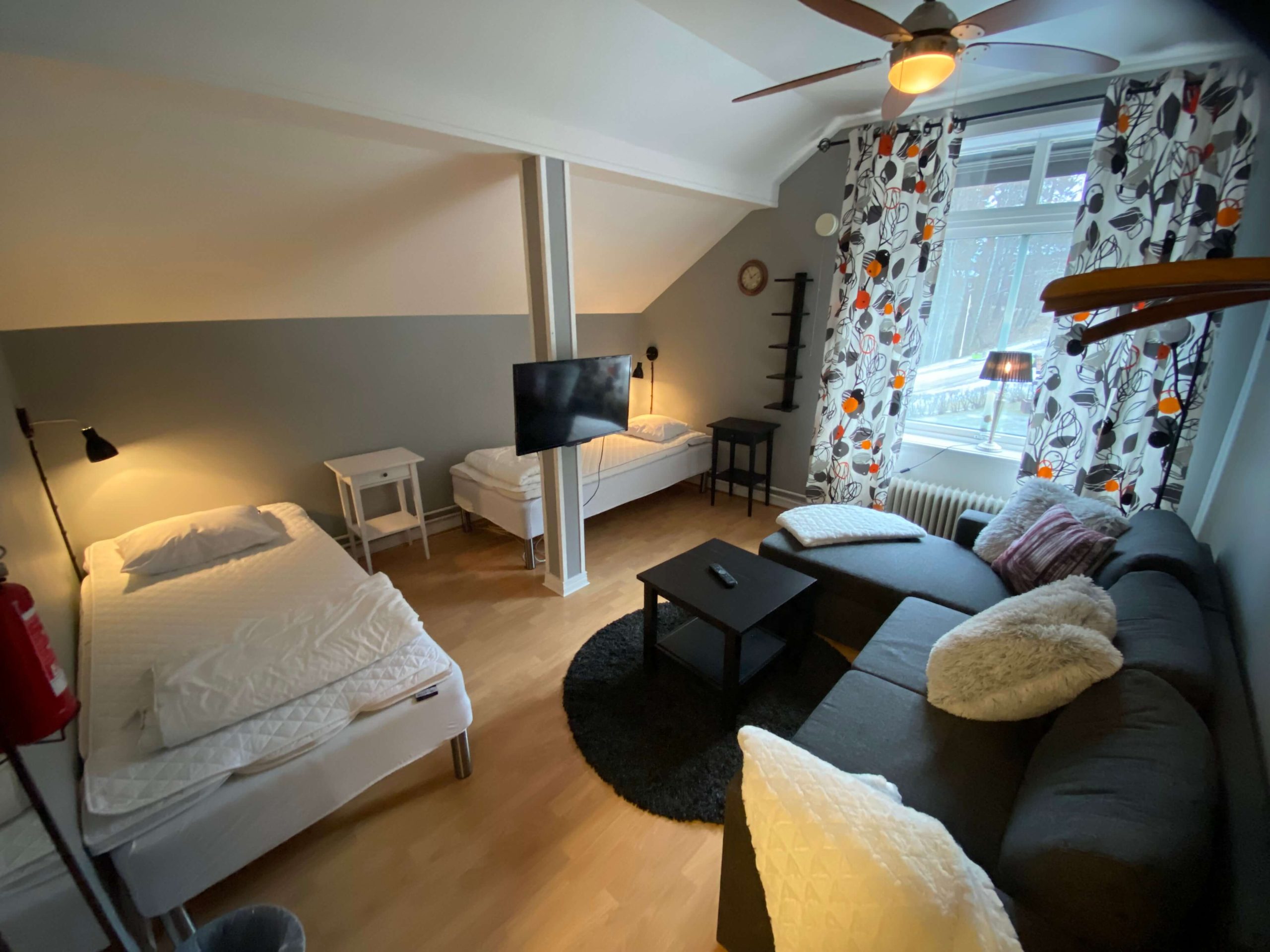 | Rum 4 (2-Bädd) 16 kvm, TV, enkelsängar + bäddsoffa | 700:- | 850:- | 1100:- | 1350:- |