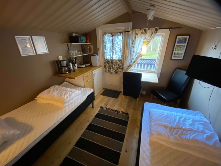 Dusch och toalett finns i de två servicehusen ca 75 meter bort. Husdjur tillåtet.
