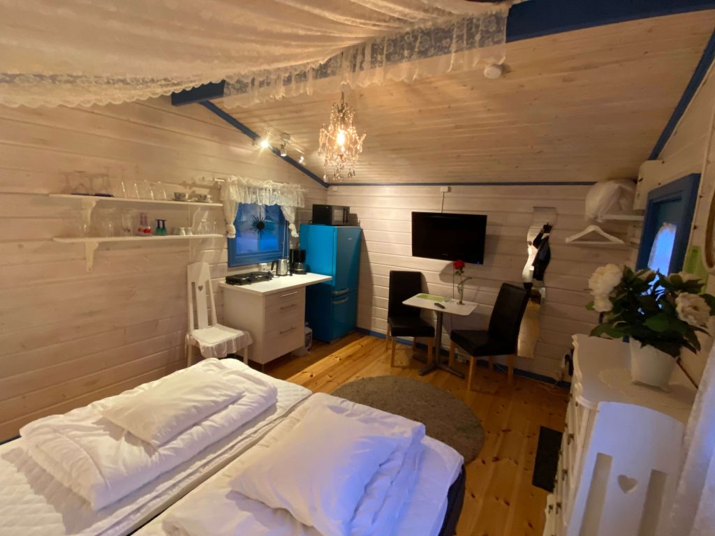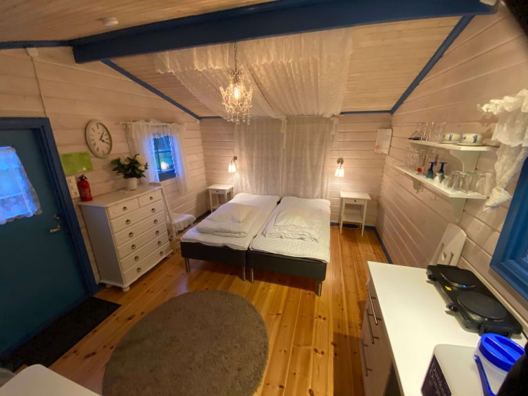 En rymlig 2-bäddsstuga på 15 m2.